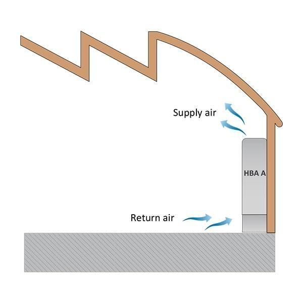 A HBA A egységek a szárítandó térben az oldalfalra telepítendők.
